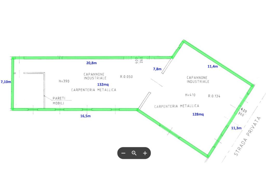 -un'area capannone di circa 125 mq, altezza di 4,10 metri, con portone carraio;