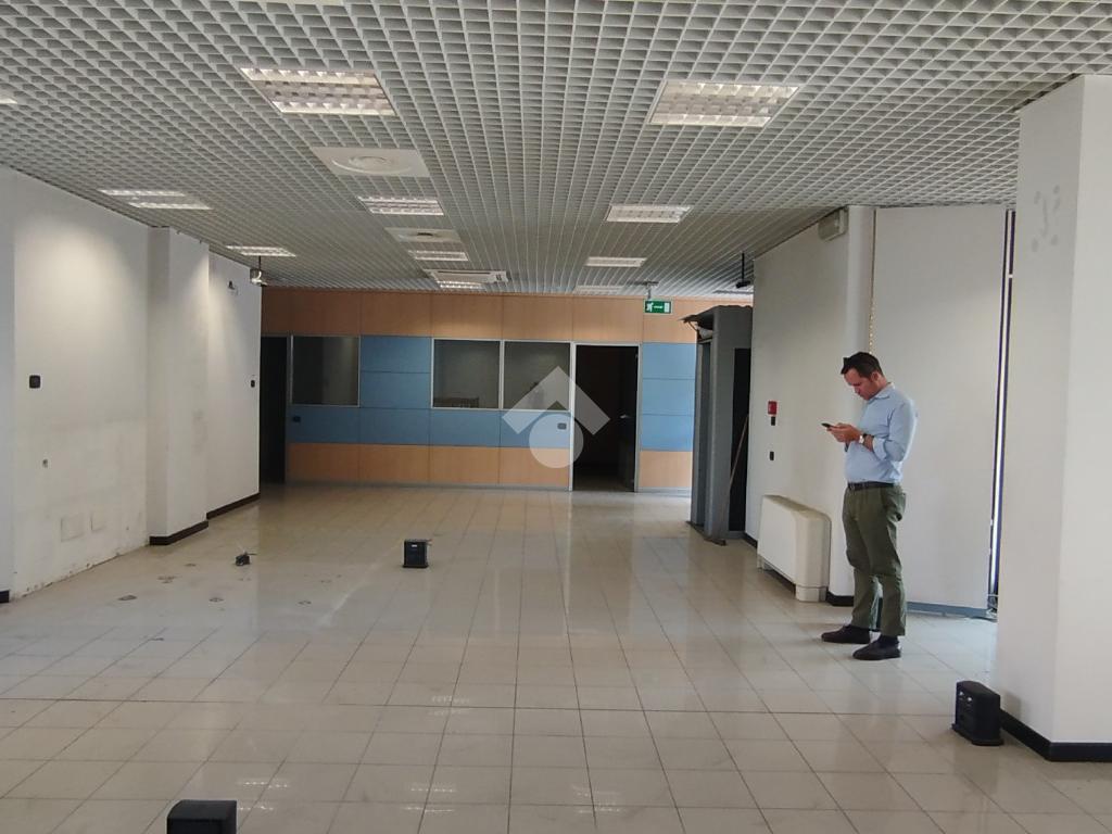 ORIGGIO centro, ex filiale bancaria con comodo portico antistante, è composto da un ampio open space a piano terra, con tre locali riservati, bagni e bussola d'ingressp. Al piano interrato locali tecnici ed archivi.